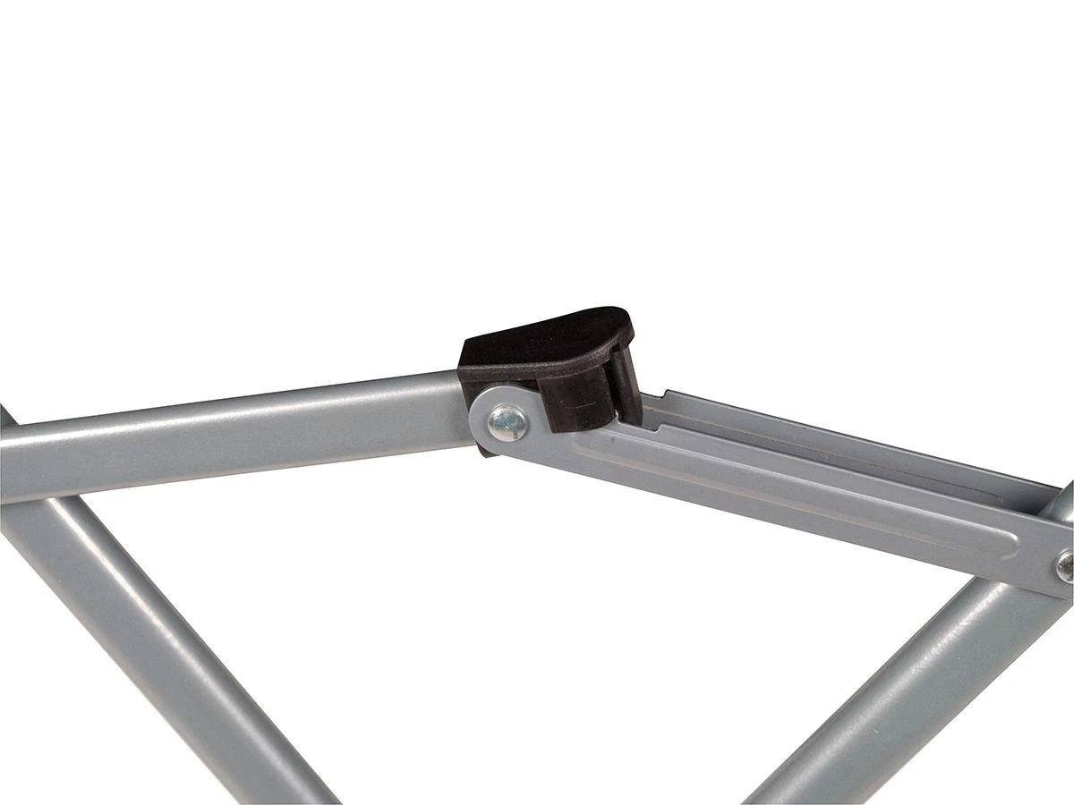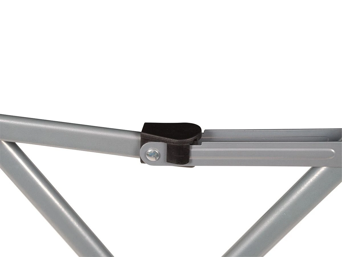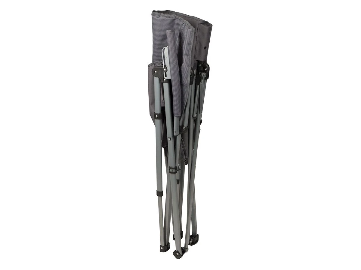 Het frame van de stoel is gemaakt van staal met daarop een stevige polyester zitting. Ook de armleggers zijn bekleed voor extra comfort. De stoel heeft een maximaal draagvermogen van 120 kg en wordt geleverd inclusief een handige draagtas.
