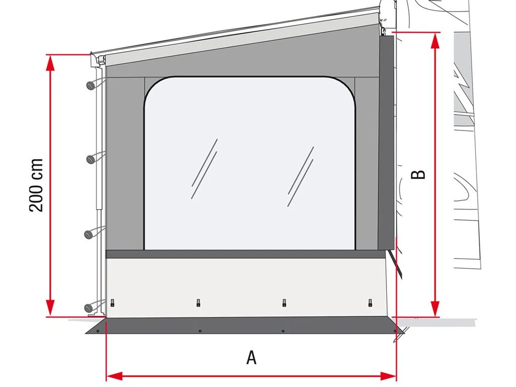 Wil je graag wat beschutter zitten onder je luifel? De Fiamma Side W Pro beschermt je tegen regen en wind. Schuif de meegeleverde spanstang door de zijwand heen en klik het geheel in je luifel. Daarna kan je heerlijk buiten blijven zitten, ook bij slecht weer.
