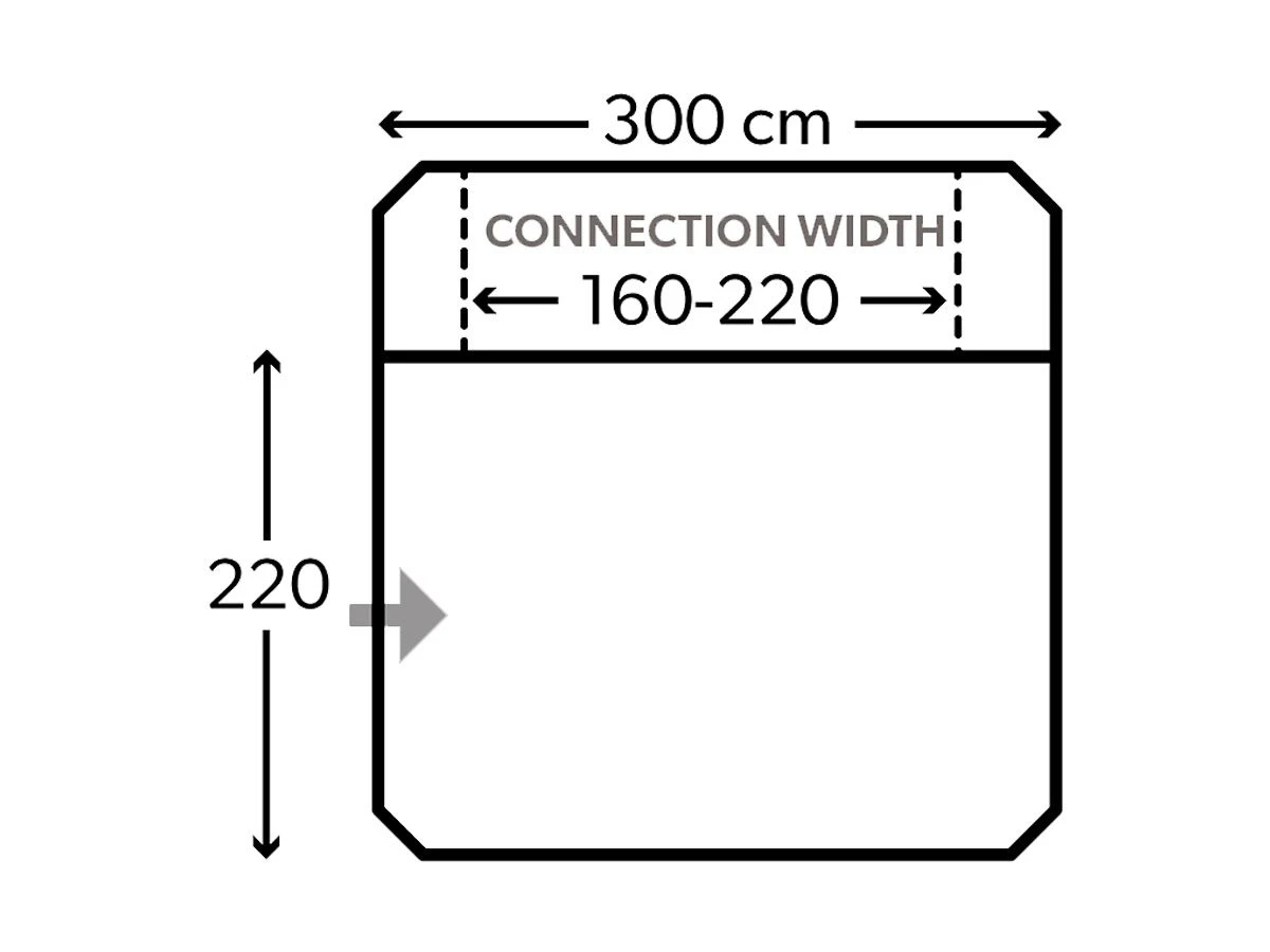 De Kampa Tailgater Air is geschikt voor voertuigen met een hoogte tussen 160 en 210 cm, en een breedte tussen 160 en 220 cm.
