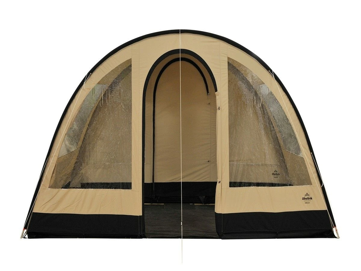 De voorwand is voorzien van een ronde deur die zijwaarts opgerold kan worden. De grote vensters zorgen voor veel lichtinval, maar kunnen ’s avonds van binnenuit met een afdekflap afgedekt worden. Zo creëer je dus extra lichtinval of privacy in je tent wanneer je dit wilt.
