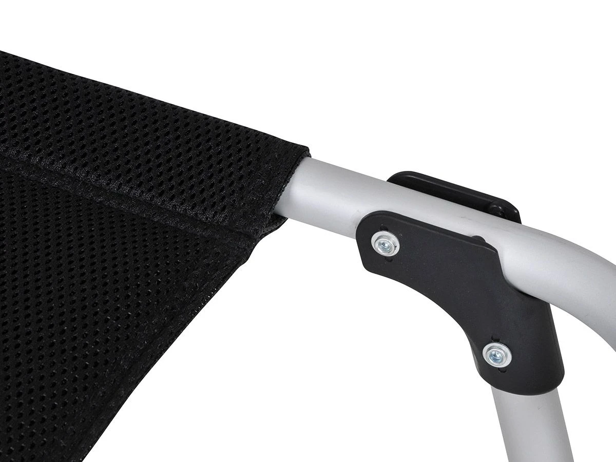 De voetensteun is gemaakt van lichtgewicht aluminium met een gepolsterd polyester bekleding.