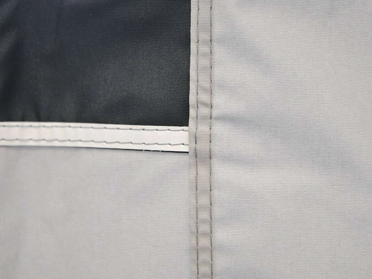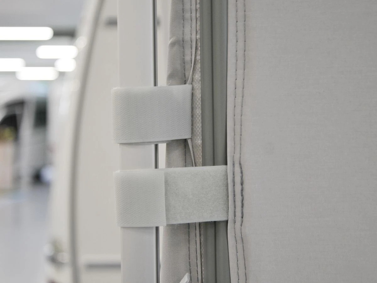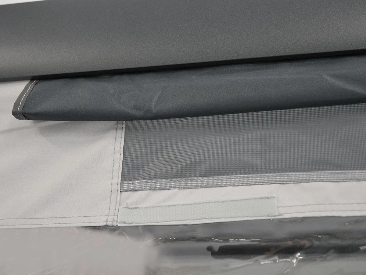 De zijkanten van de voorwand zijn voorzien van klittenbandbevestiging voor bevestiging aan de staanders van de luifel. In combinatie met de President zijwanden is het mogelijk om van de luifel een complete voortent te maken.