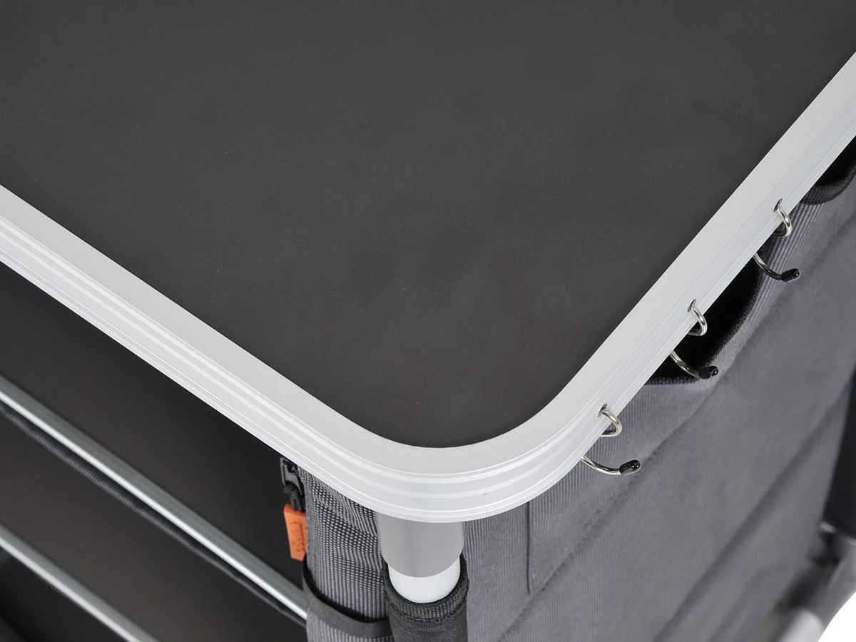 Ben je op zoek naar een campingkeuken waar je lekker op kunt koken en waar je veel spullen in kunt opbergen? Dan is de Obelink Toulon Luxe de ideale campingkast! De Obelink Toulon Luxe is een handige campingkast, voorzien van 6 ruime opbergvakken en een bovenblad van aluminium. Dit blad is hitte- en waterbestendig, en daarmee ideaal om op te koken.