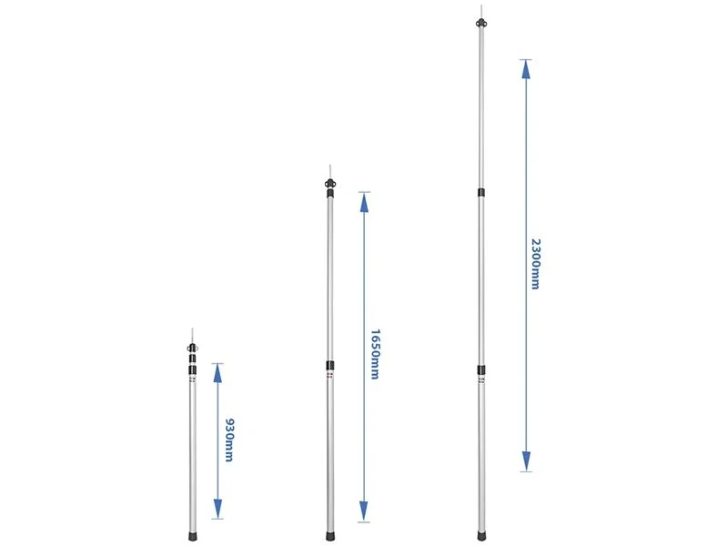 Deze set bestaat uit 2 telescopische luifelstaanders van aluminium. Dankzij het draaimechanisme zijn deze luifelstaanders eenvoudig in een handomdraai te verstellen van 90 tot 230 cm. De bovenzijde is voorzien van een stevige stalen punt die maar liefst 6,5 cm lang is.