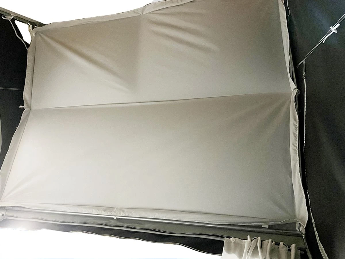 Deze fraaie binnenhemel dient niet alleen ter decoratie. Dankzij het absorberende vermogen neemt een binnenhemel het condensvocht in de voortent op. Dit zorgt voor een aangenamer leefklimaat en voorkomt dat condensdruppels naar beneden kunnen vallen.